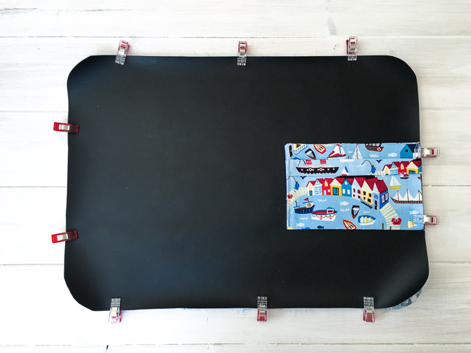 - Place the chalkboard fabric and the backing fabric pieces wrong sides together.