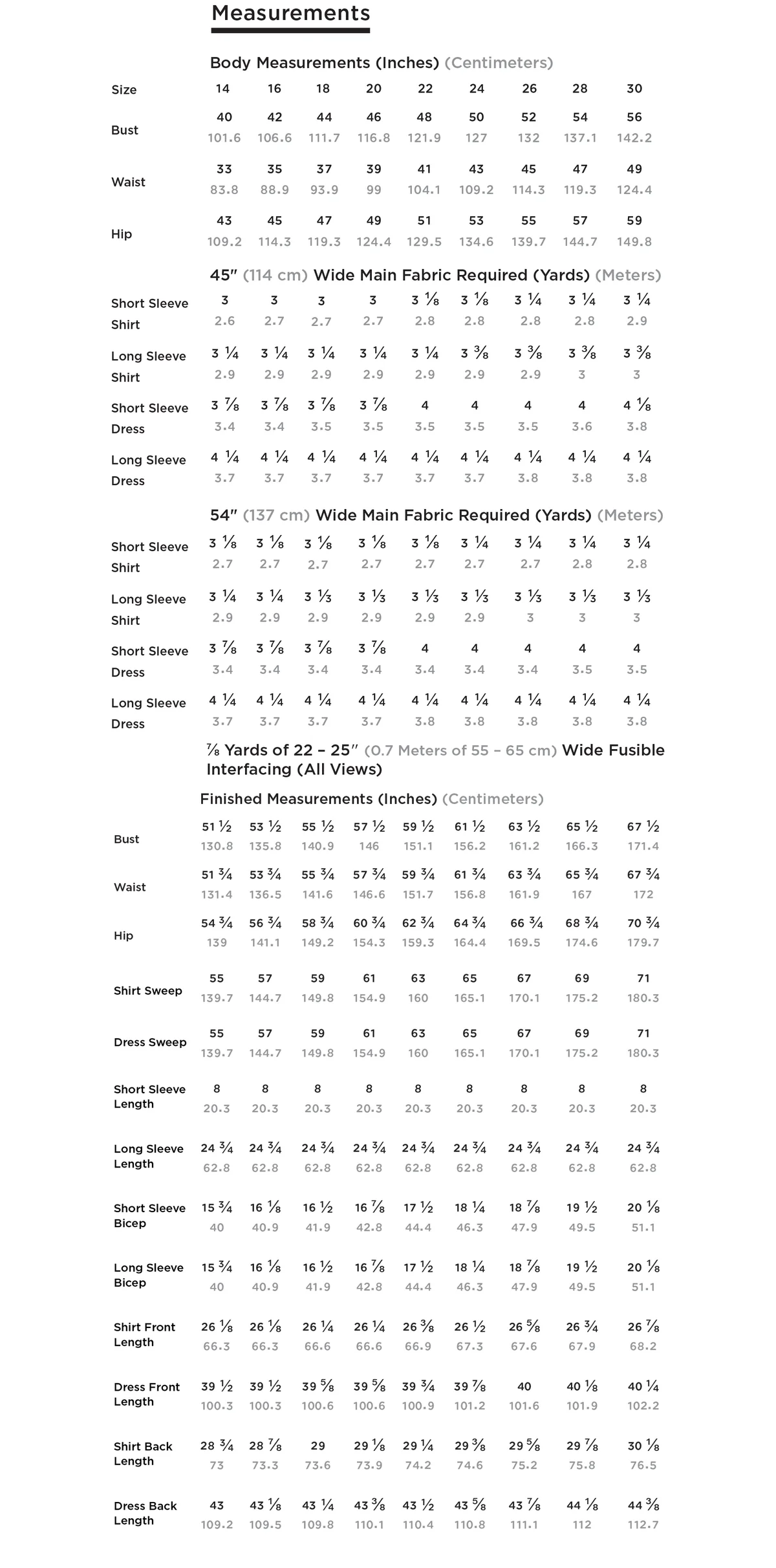 FABRIC REQUIREMENTS & SIZING