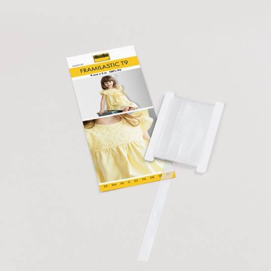 Vilene Framilastic T9 Elastic PU Tape – Vlieseline. A high elastic PU tape (stretchable up to 450%). Ideal for shape retention on parts from elastic fabrics as well as creating your own personal touch for various creative applications.